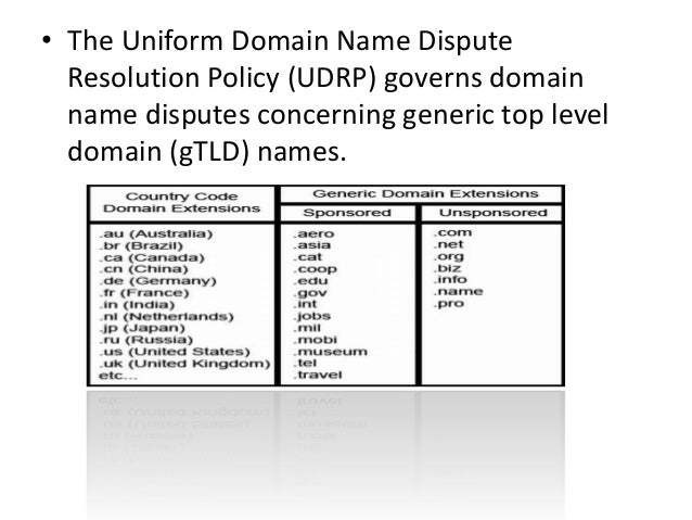 A list of such Providers appears at policiesustld-dispute-providers. While most domain name cases are trademark disputes that are resolved under the Uniform Domain Name Dispute Resolution Policy UDRP there are many similar policies adopted by the Internet Corporation for Assigned Names and Numbers ICANN for generic top-level domains gTLDs. This CentralNic Dispute Resolution Policy the Policy is incorporated by reference into your Registration Agreement and sets forth the terms and conditions in connection with a dispute between you and any party other than us CentralNic over the registration and use of any sub-level domain name Domain Name provided by us and registered by you.